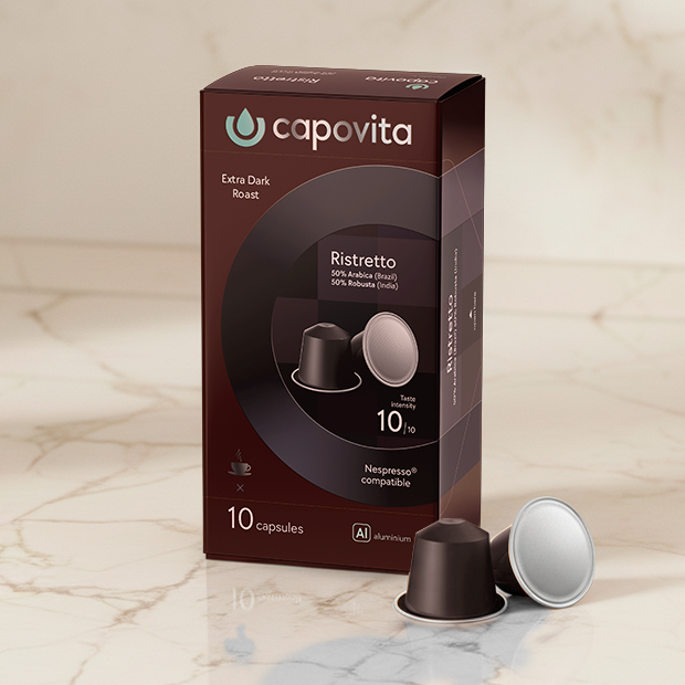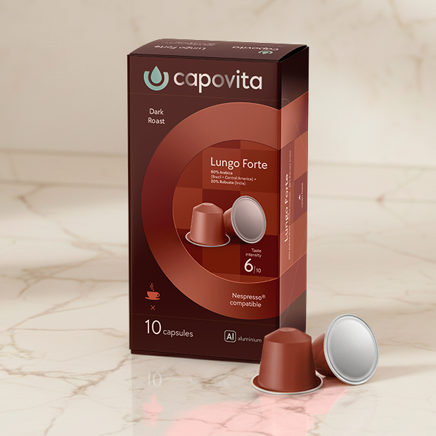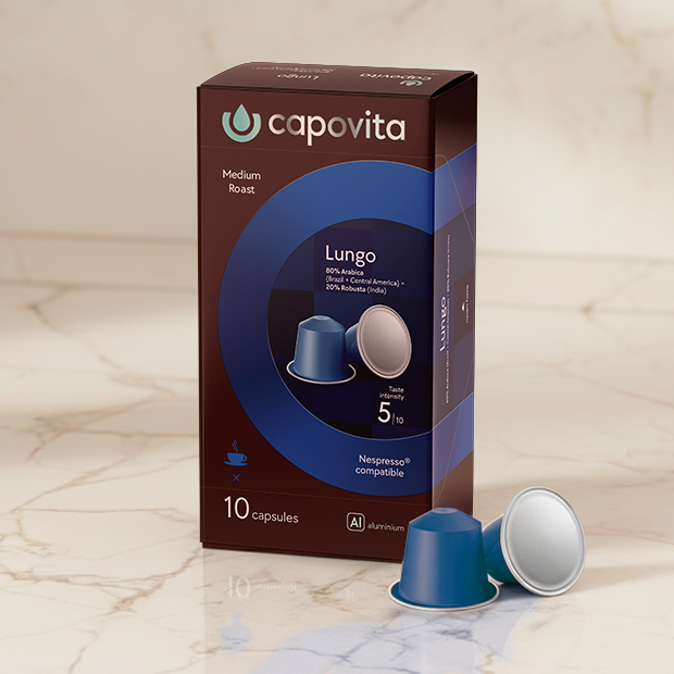 Капсулы Capovita Nespresso® созданы для тех, кто ценит честный вкус и мгновенный комфорт. Мы используем отборные зёрна арабики и робусты из лучших кофейных регионов — Латинской Америки, Африки и Азии. Каждая смесь сбалансирована так, чтобы сохранить естественную глубину, аромат и кремовую текстуру. Наш кофе одинаково хорош дома и в офисе — без сахара, без глютена и без компромиссов в качестве. Капсулы совместимы со всеми кофемашинами стандарта Nespresso®, а также идеально подходят для кофемашин Capovita ART и Capovita Phantom / Phantom Pro. Эти машины раскрывают вкус кофе в полной мере — с точным давлением, температурой и скоростью экстракции. Capovita — это больше, чем бренд. Это тёплый момент в начале дня. Простое удовольствие, которое становится вашим личным ритуалом.