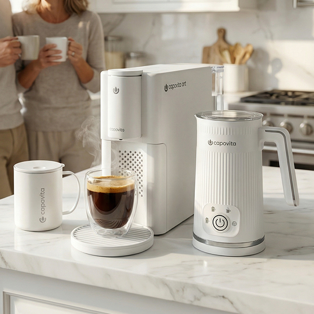 Идеально сочетается со вспенивателем Capovita BRUMA или ALBA.